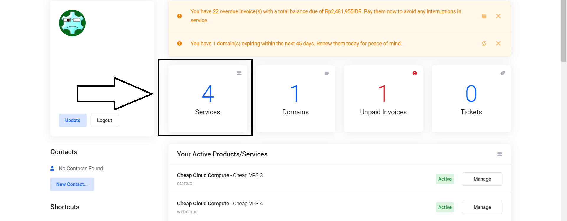 4. Anda akan diarahkan ke panel Kontrol VPS