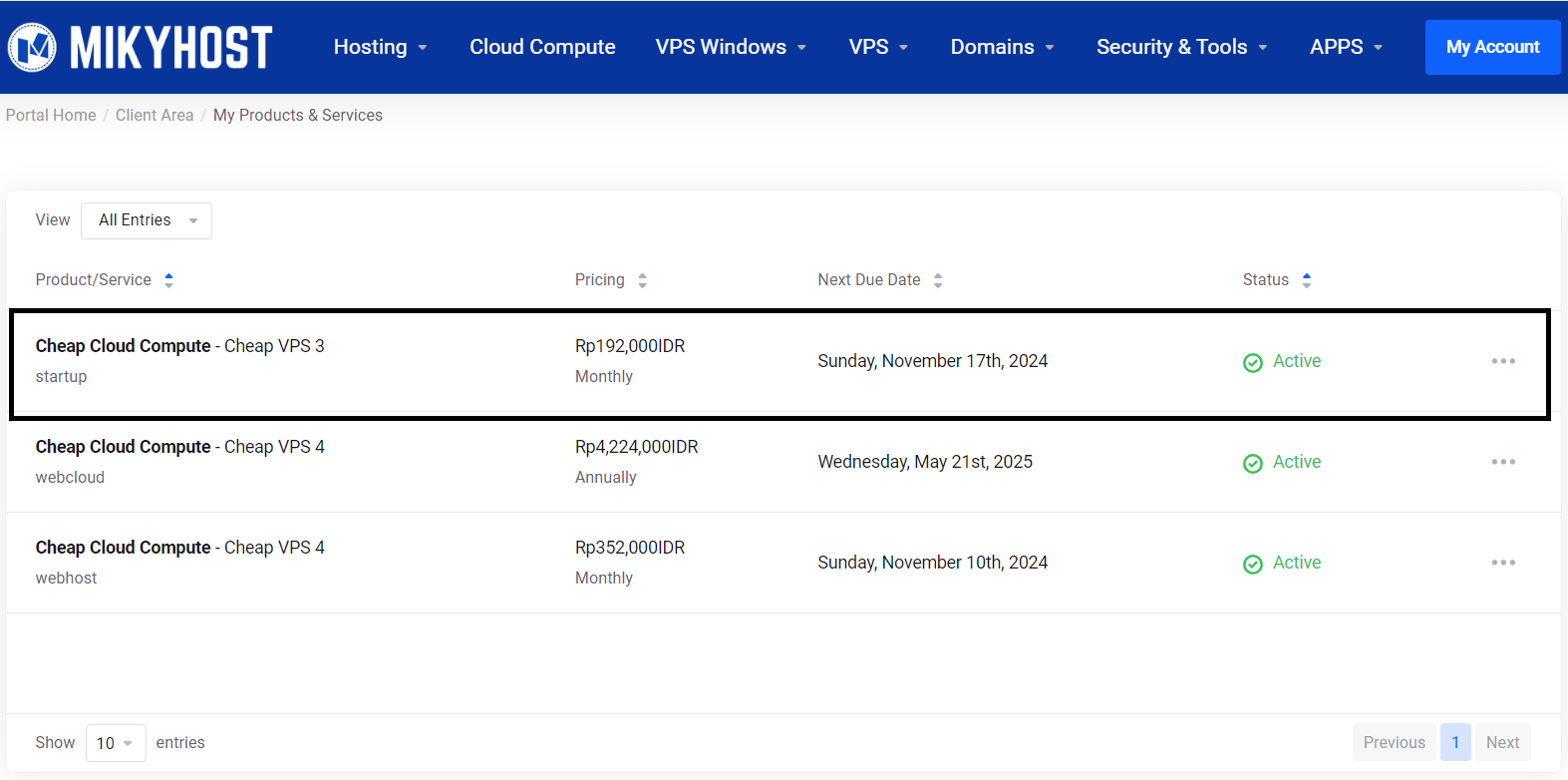 1. Login ke Mikyhost.com menggunakan email dan password Anda.